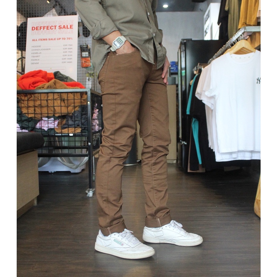 Jual Slim Fit Denim Twill Trouser Dark Brown Qs5003 Shopee Indonesia